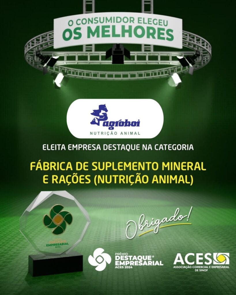 Excelência reconhecida: pelo terceiro ano consecutivo fomos reconhecidos como a melhor do segmento. É com grande alegria que compartilhamos a notícia da AGROBOI, sob a liderança visionária de Alex Fasbinder, sendo reconhecida como a Melhor Fábrica de Suplementos Minerais e Rações em Sinop por três anos consecutivos, 2022, 2023 e 2024. Além deste feito, em […]